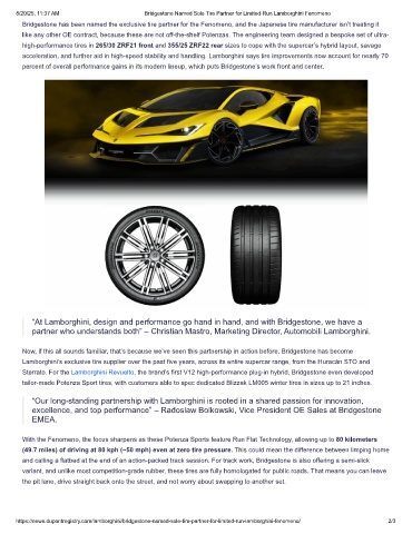 8/20/25, 11:37 AM Bridgestone Named Sole Tire Partner for Limited-Run Lamborghini Fenomeno