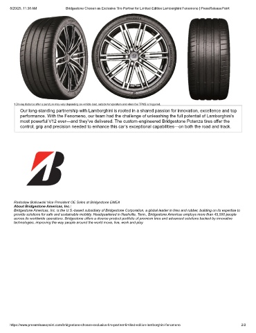 8/20/25, 11:38 AM Bridgestone Chosen as Exclusive Tire Partner for Limited-Edition Lamborghini Fenomeno | PressReleasePoint