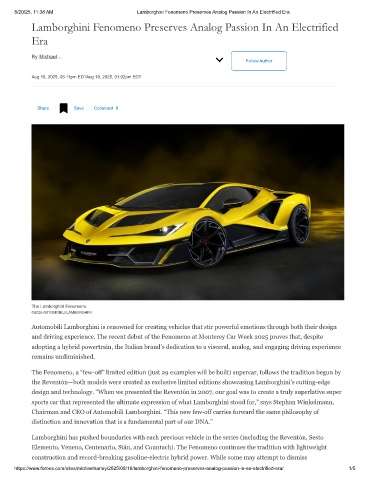 https://www.forbes.com/sites/michaelharley/2025/08/18/lamborghini-fenomeno-preserves-analog-passion-in-an-electrified-era/ 1/5