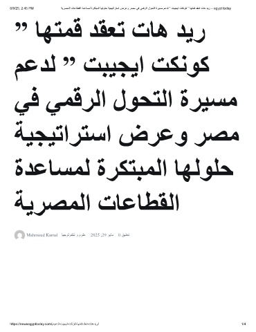 6/9/25, 2:45 PM ﺔﯾرﺻﻣﻟا تﺎﻋﺎطﻘﻟا ةدﻋﺎﺳﻣﻟ ةرﻛﺗﺑﻣﻟا ﺎﮭﻟوﻠﺣ ﺔﯾﺟﯾﺗارﺗﺳا ضرﻋو رﺻﻣ ﻲﻓ ﻲﻣﻗرﻟا لوﺣﺗﻟا ةرﯾﺳﻣ مﻋدﻟ ” تﺑﯾﺟﯾا تﻛﻧوﻛ ” ﺎﮭﺗﻣﻗ دﻘﻌﺗ تﺎھ دﯾر – egypt today