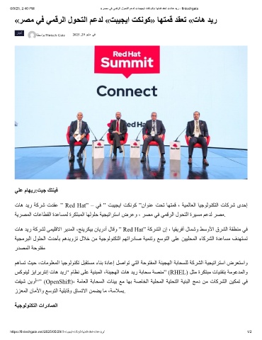 تﺎھ ﺪﯾر ﺔﻛﺮﺷ تﺪﻘﻋ ” Red Hat” – ﻲﻓ ” ﺖﺒﯿﺠﯾا ﺖﻜﻧﻮﻛ ”ناﻮﻨﻋ ﺖﺤﺗ ﺎﮭﺘﻤﻗ ، ﺔﯿﻤﻟﺎﻌﻟا ﺎﯿﺟﻮﻟﻮﻨﻜﺘﻟا تﺎﻛﺮﺷ ىﺪﺣإ