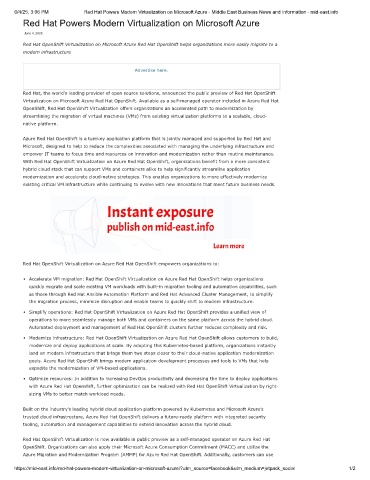 6/4/25, 3:06 PM Red Hat Powers Modern Virtualization on Microsoft Azure - Middle East Business News and Information - mid-east.info