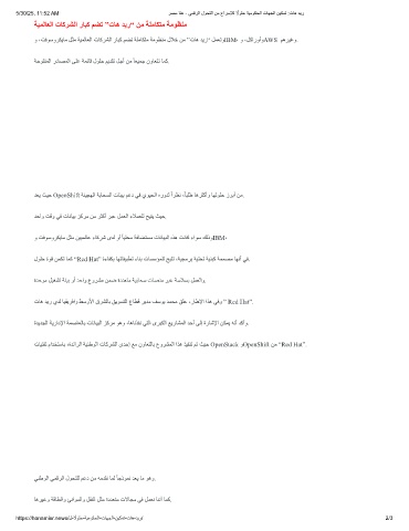 تﺎﯿﻨﻘﺗ ماﺪﺨﺘﺳﺎﺑ ،ةﺪﺋاﺮﻟا ﺔﯿﻨطﻮﻟا تﺎﻛﺮﺸﻟا ىﺪﺣإ ﻊﻣ نوﺎﻌﺘﻟﺎﺑ عوﺮﺸﻤﻟا اﺬھ ﺬﯿﻔﻨﺗ ﻢﺗ ﺚﯿﺣ OpenStack وOpenShift ﻦﻣ “Red Hat”.