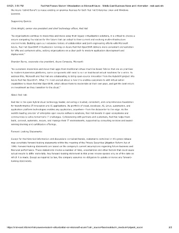 6/4/25, 3:06 PM Red Hat Powers Modern Virtualization on Microsoft Azure - Middle East Business News and Information - mid-east.info