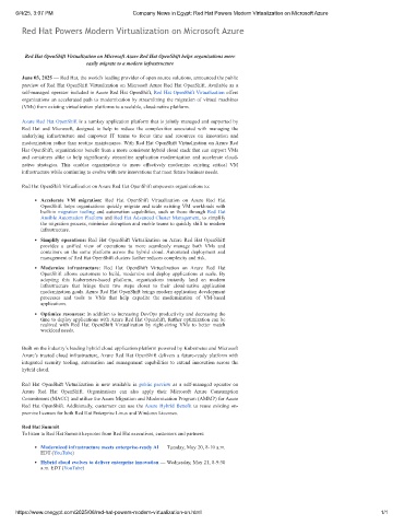 6/4/25, 3:07 PM Company News in Egypt: Red Hat Powers Modern Virtualization on Microsoft Azure