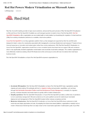 6/4/25, 3:07 PM Red Hat Powers Modern Virtualization on Microsoft Azure - Middle East News 247