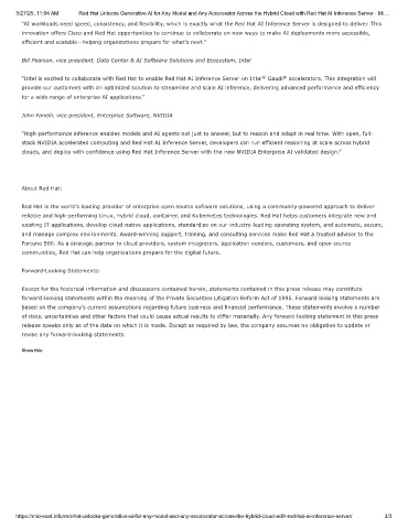 5/27/25, 11:04 AM Red Hat Unlocks Generative AI for Any Model and Any Accelerator Across the Hybrid Cloud with Red Hat AI Inference Server - Mi…