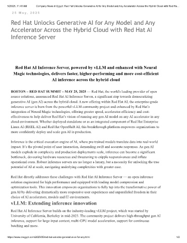 5/26/25, 11:40 AM Company News in Egypt: Red Hat Unlocks Generative AI for Any Model and Any Accelerator Across the Hybrid Cloud with Red Ha…
