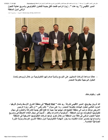 ، ﺎﯾﻘﯾرﻓأ لﺎﻣﺷو طﺳوﻷا قرﺷﻟا ﺔﻘطﻧﻣ ﻲﻓ "Red Hat " تﺎھ دﯾر ﺔﻛرﺷﻟ ﻰﻣﯾﻠﻗﻻا رﯾدﻣﻟا ،ﺞﻧﯾرﻛﯾﺑ نﺎﯾردأ دﻛا
