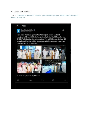Publication: X- Media Office Link: X - Media Office: Hasher bin Maktoum opens CABSAT, Integrate Middle East and inaugural SATExpo Middle East