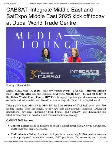 5/14/25, 10:52 AM CABSAT, Integrate Middle East and SatExpo Middle East 2025 kick off today at Dubai World Trade Centre