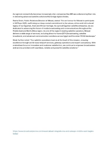 Rasha Shokr, Public Relations Director at Nilesat, stated: “It is an honour for Nilesat to participate