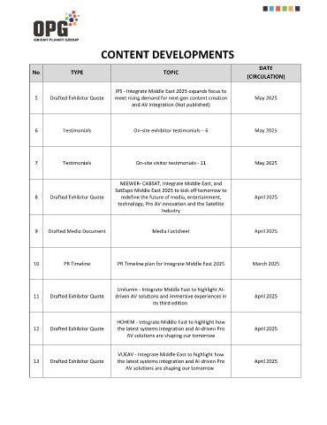 10 PR Timeline PR Timeline plan for Integrate Middle East 2025 March 2025