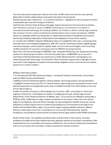 said "Panasonic is proud to return to CABSAT, reinforcing our commitment to innovation in