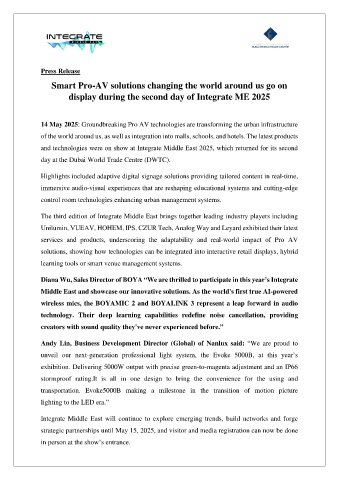 Diana Wu, Sales Director of BOYA “We are thrilled to participate in this year’s Integrate