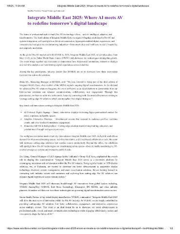 5/8/25, 11:04 AM Integrate Middle East 2025: Where AI meets AV to redefine tomorrow’s digital landscape