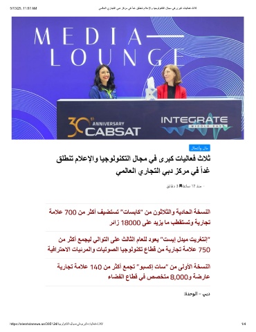 5/13/25, 11:07 AM ﻲﻣﻟﺎﻌﻟا يرﺎﺟﺗﻟا ﻲﺑد زﻛرﻣ ﻲﻓ ًادﻏ ﻖﻠطﻧﺗ مﻼﻋﻹاو ﺎﯾﺟوﻟوﻧﻛﺗﻟا لﺎﺟﻣ ﻲﻓ ىرﺑﻛ تﺎﯾﻟﺎﻌﻓ ثﻼﺛ