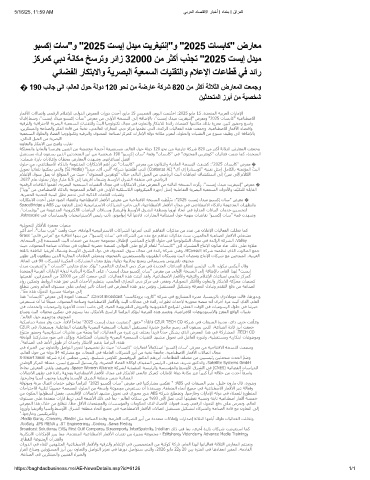 رﺎﻤﻗﻷا تﻻﺎﺼﺗاو ﻲﻤﻗﺮﻟا مﻼﻋﻺﻟ ﻲﻟوﺪﻟا ضﺮﻌﻤﻟا تارود ثﺪﺣأ ،ﻮﻳﺎﻣ 15 ﺲﯿﻤﺨﻟا ،مﻮﯿﻟا ﺖﻤﺘُﺘﺧا :2025 ﻮﻳﺎﻣ 15 ،ةﺪﺤﺘﻤﻟا ﺔﯿﺑﺮﻌﻟا تارﺎﻣﻹا