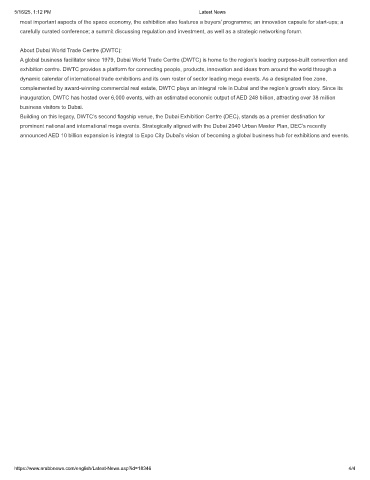 inauguration, DWTC has hosted over 6,000 events, with an estimated economic output of AED 248 billion, attracting over 38 million