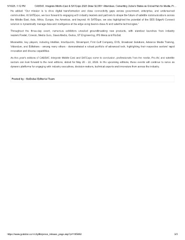 5/16/25, 1:12 PM CABSAT, Integrate Middle East & SATExpo 2025 Draw 32,000+ Attendees, Cementing Dubai's Status as Global Hub for Media, Pr…