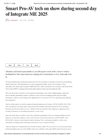 5/15/25, 11:12 AM Smart Pro-AV tech on show during second day of Integrate ME 2025 - BroadcastPro ME
