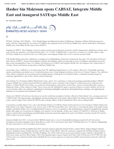 5/14/25, 1:22 PM Hasher bin Maktoum opens CABSAT, Integrate Middle East and inaugural SATExpo Middle East – UAE Business and Travel Insigh…
