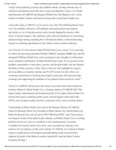 5/14/25, 1:23 PM Hasher bin Maktoum opens CABSAT, Integrate Middle East and inaugural SATExpo Middle East