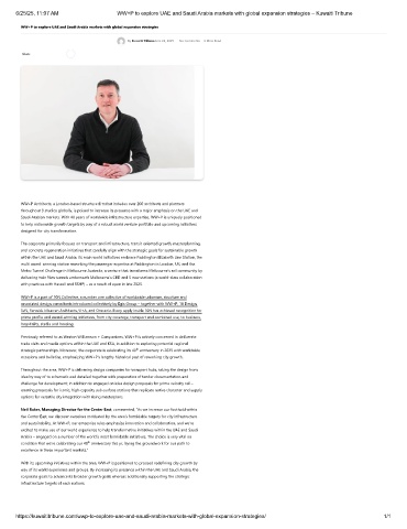 6/25/25, 11:07 AM WW+P to explore UAE and Saudi Arabia markets with global expansion strategies – Kuwaiti Tribune