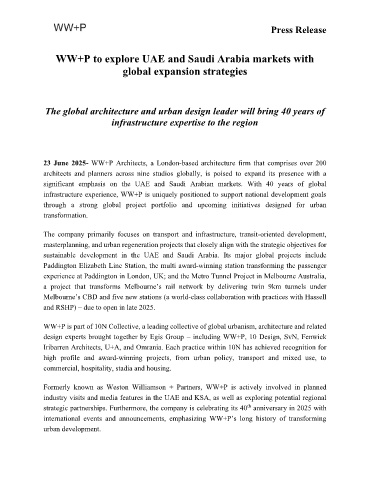 WW+P to explore UAE and Saudi Arabia markets with
