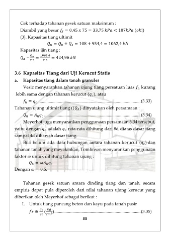 Meyerhof juga menyarankan penggunaan persamaan 3.34 tersebut,