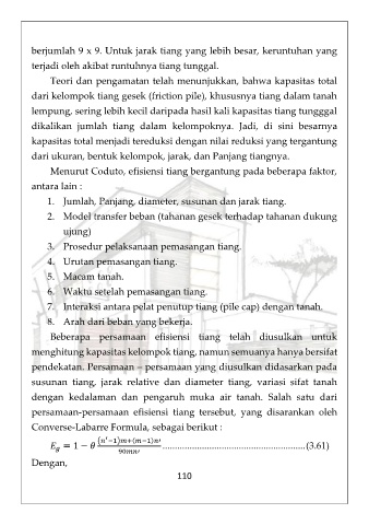 lempung, sering lebih kecil daripada hasil kali kapasitas tiang tungggal