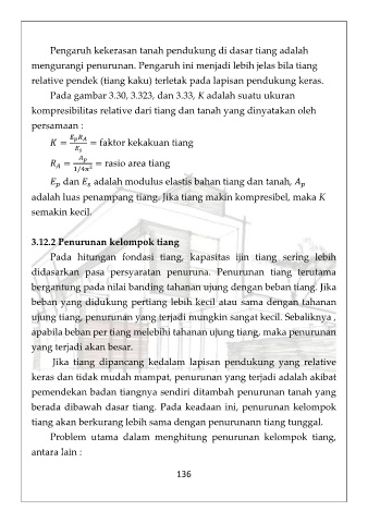adalah luas penampang tiang. Jika tiang makin kompresibel, maka K