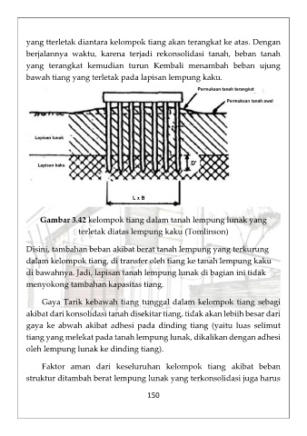 dalam kelompok tiang, di transfer oleh tiang ke tanah lempung kaku