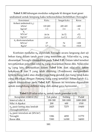 Tabel 3.14Hubungan modulus subgrade kl dengan kuat geser