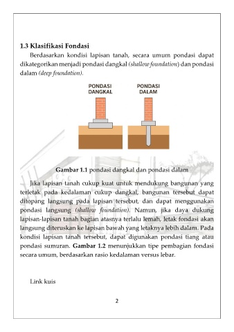 dikategorikan menjadi pondasi dangkal (shallow foundation) dan pondasi