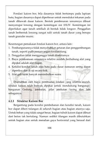 Keuntungan pemakaian fondasi kaison bor, antara lain :