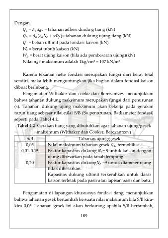 0,01-0,15 Faktor kapasitas dukung = 9 untuk kaison dengan