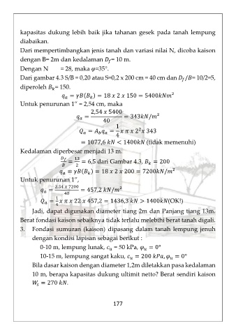 10 m, berapa kapasitas dukung ultimit netto? Berat sendiri kaison