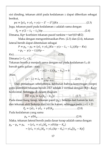 Maka, tekanan lateral bersih pada dasar turap adalah sama dengan
