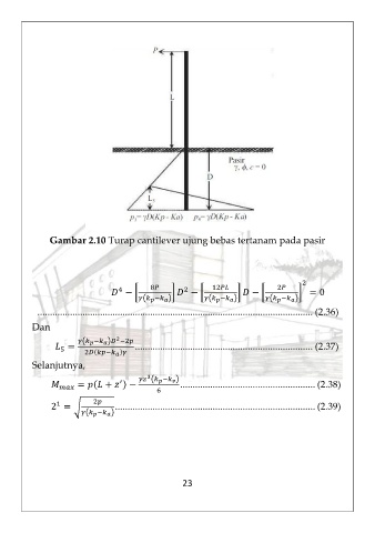 Gambar 2.10 Turap cantilever ujung bebas tertanam pada pasir