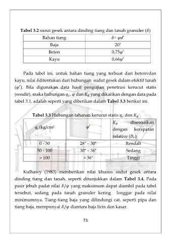 Tabel 3.2 susut gesek antara dinding tiang dan tanah granuler ( )