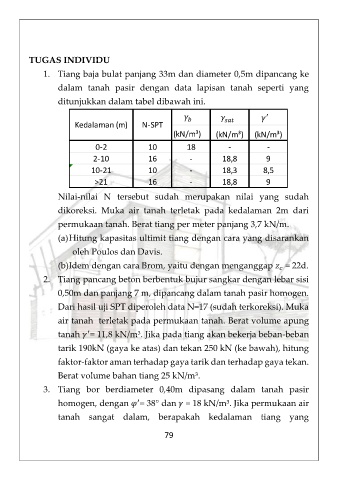 permukaan tanah. Berat tiang per meter panjang 3,7 kN/m.