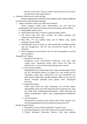 e) Kebutuhan telekomunikasi dalam jaringan