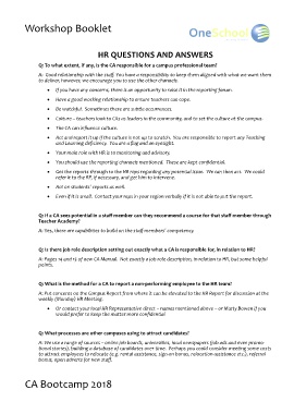 Q: Is there job role description setting out exactly what a CA is responsible for, in relation to HR?