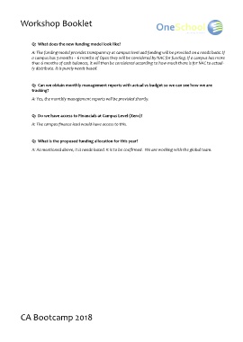 A: The funding model provides transparency at campus level and funding will be provided on a needs basis. If