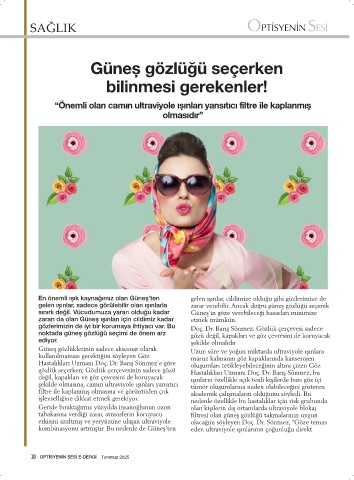 10 OPTİSYENİN SESİ E-DERGİ Temmuz 2025