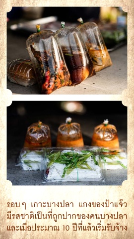 รอบๆ เกาะบางปลา แกงของป้าแจ๊ว ิ ็ ่ มรสชื่าตเปนทีถึูกปากของคนบางปลา ี ี และเมื่อประมาณ 10 ปที่แล้วเริ่มรับจ้าง