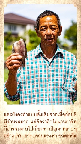 ่ ื และยังคงทำาแบบดั�งเดิมจากเมอก่อนที ่ ำ ่ มจานวนมาก แตคิดว่าอีกไม่นานอาชีพ ี ื ่ น�อาจจะหายไปเนองจากปัญ่หาหลายๆ ี อย่าง เช่น ขาดแคลนแรงงานขอดเกล็ด