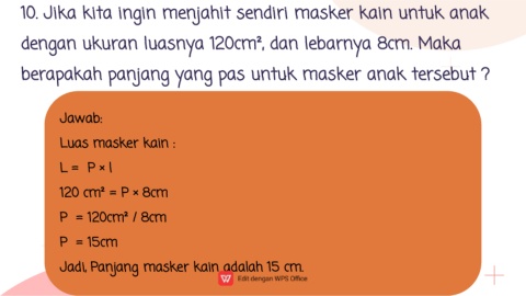 Jadi, Panjang masker kain adalah 15 cm.