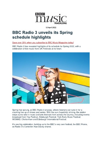 BBC Radio 3 has revealed highlights of its schedule for Spring 2022, with a